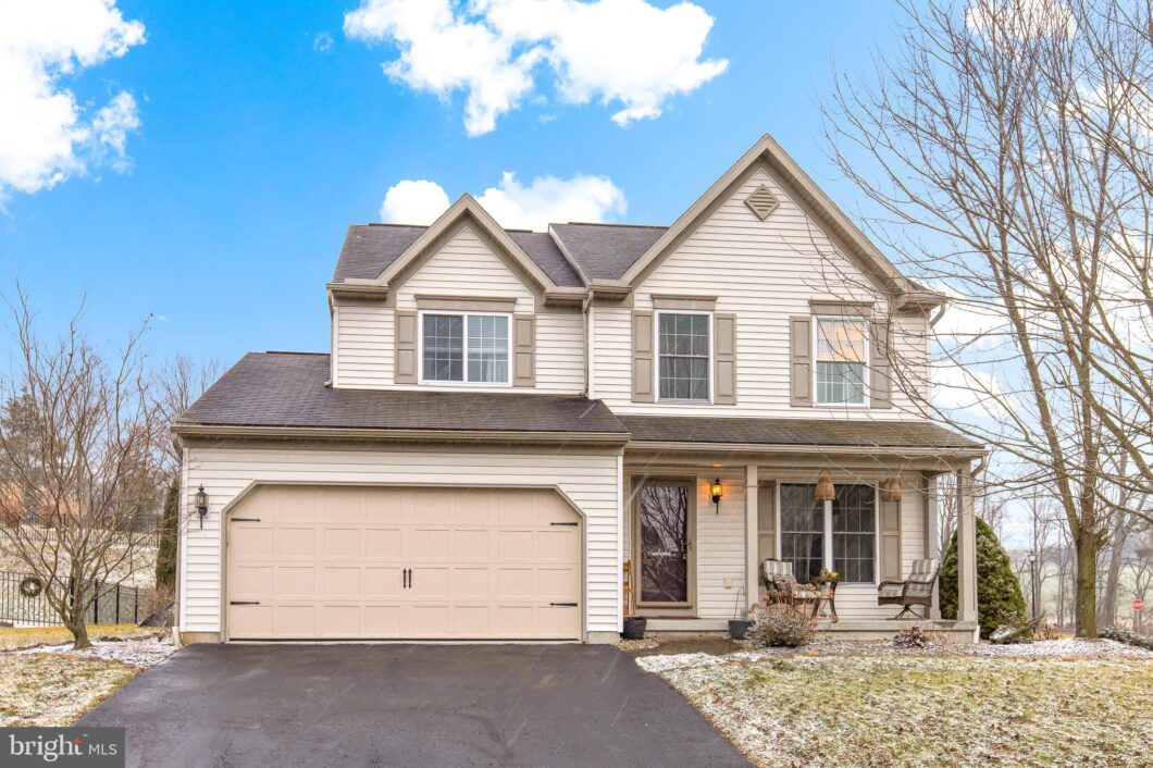Welcome to this immaculate home in the serene Pine Ridge Village, where rural charm meets commuter convenience. From the moment you step onto the inviting front porch and into the foyer with gleaming hardwood floors, you’ll feel right at home. The main level serves as the heart of the home, featuring a formal living room and a sunlit dining room with vaulted ceilings and abundant windows. The cozy family room provides the perfect spot to relax, while the delightful kitchen boasts an island, pantry, ceiling fan, and recessed and pendant lighting. Completing this level are a convenient powder room and a laundry room. Upstairs, the primary suite offers a vaulted ceiling, walk-in closet, and en-suite bath, creating a private retreat. Two additional bedrooms, both with ceiling fans, and a hall bath complete the upper level. The lower level provides ample storage or the potential for finishing to suit your needs. Outdoors, enjoy the charm of a paver patio and the convenience of a 2-car garage. This home effortlessly combines comfort, style, and practicality—schedule your tour today and make it your own!